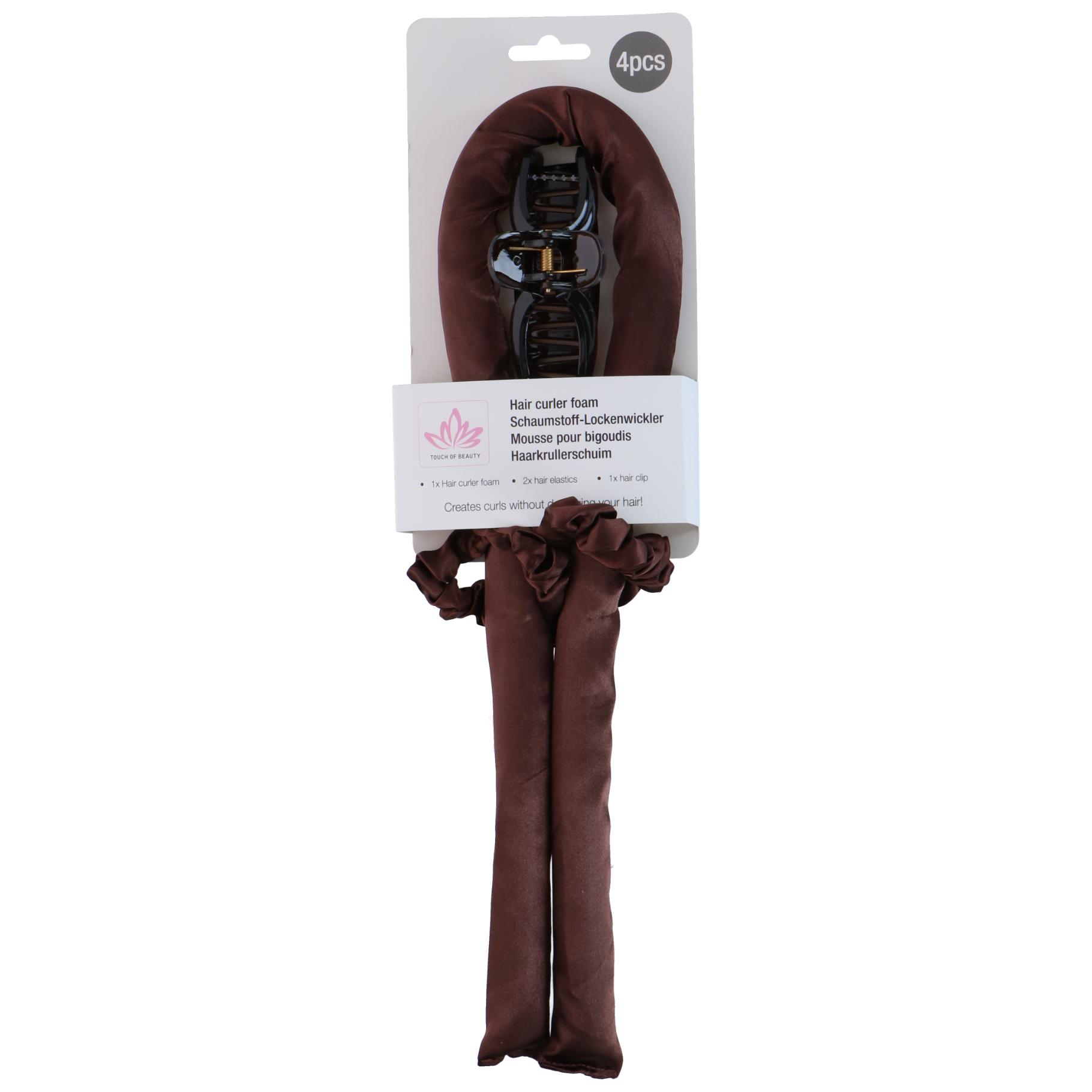 Deze set bestaat uit 4 foam krullers die lichtgewicht zijn en zacht aanvoelen. Ze zijn ontworpen om een comfortabele pasvorm te bieden en zijn eenvoudig te bevestigen in het haar zonder knopen of te veel druk. Afmetingen per kruller zijn 20 cm in lengte en 3 cm in dikte.