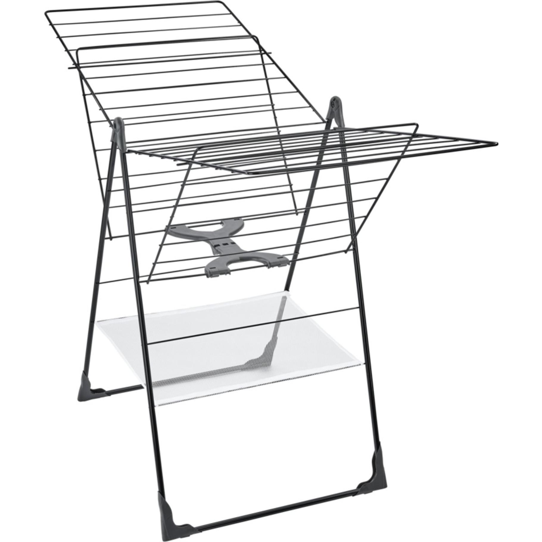 Dit droogrek is ontworpen met functionaliteit in gedachten. Het biedt een flexibele opstelling, zodat u het kunt aanpassen aan uw ruimte en behoeften. De stevige constructie geeft extra stabiliteit, zelfs met volle waslading. Het moderne zwarte design zorgt ervoor dat het een stijlvolle aanvulling is voor elke wasruimte.