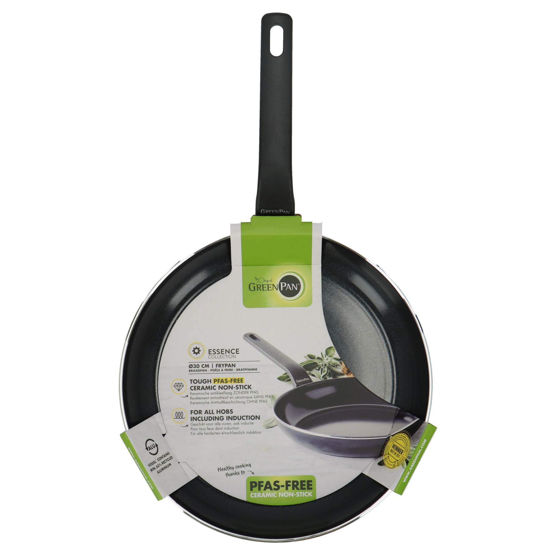 De Green Pan Essence koekenpan met een diameter van 30 cm is ontworpen voor efficiënte kookprestaties en een gebruiksvriendelijke ervaring. Deze pan is ideaal voor het bereiden van een verscheidenheid aan gerechten, van ontbijteieren tot roerbakgerechten.