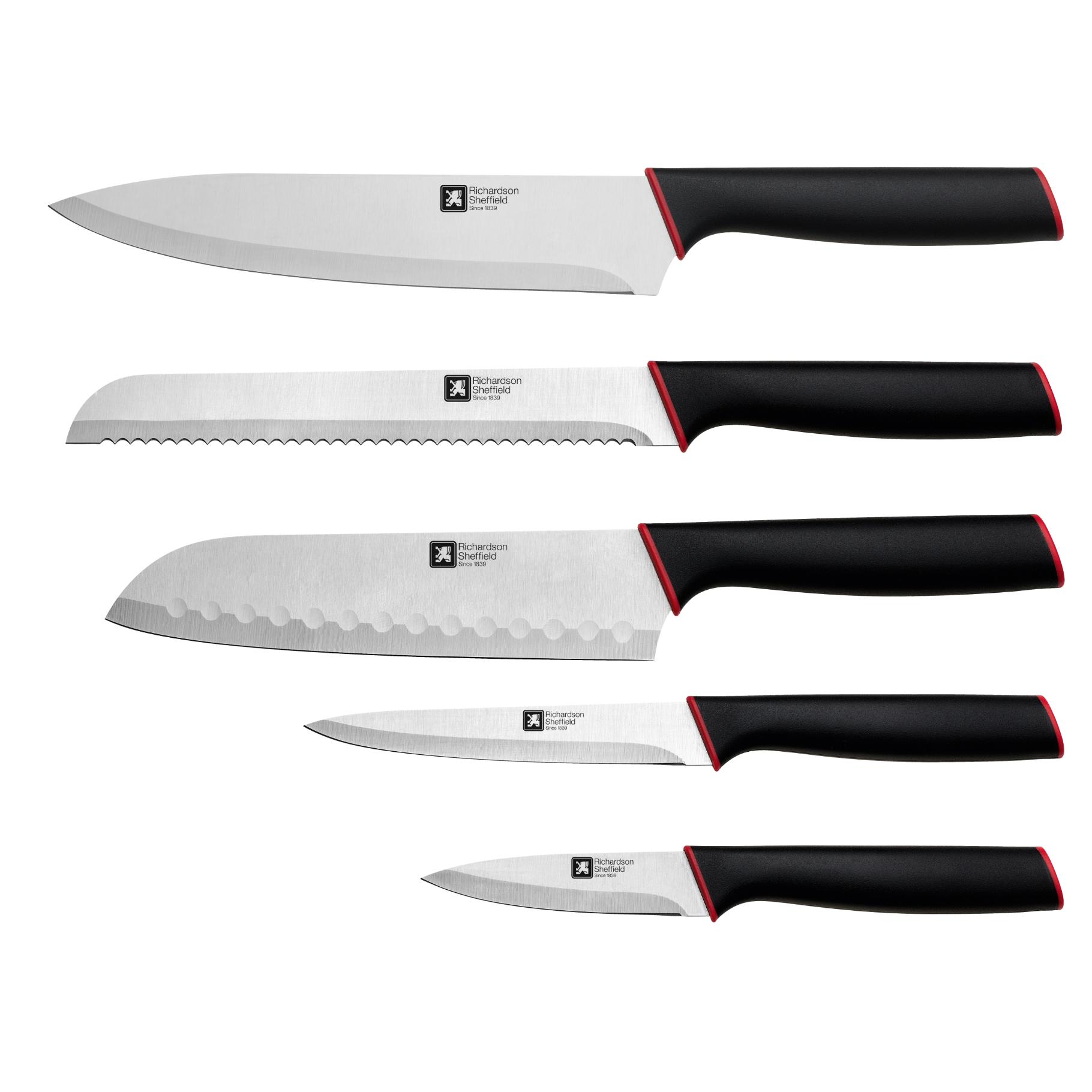 De messen zijn vervaardigd van hoogwaardig roestvrij staal, wat zorgt voor een uitstekende sterkte en duurzaamheid. Elke messenm heeft een specifieke afmeting die perfect is voor verschillende snijtaken, van het snijden van groenten tot het fileren van vis.