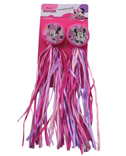 Breng extra vrolijkheid op de fiets met deze Minnie Mouse handvatversiering! De kleurrijke slingertjes wapperen speels mee in de wind en zorgen voor een feestelijk effect tijdens elke rit. Op de ronde bevestiging prijkt een schattige afbeelding van Minnie Mouse – ideaal voor kleine fans van deze iconische Disney-figuur.