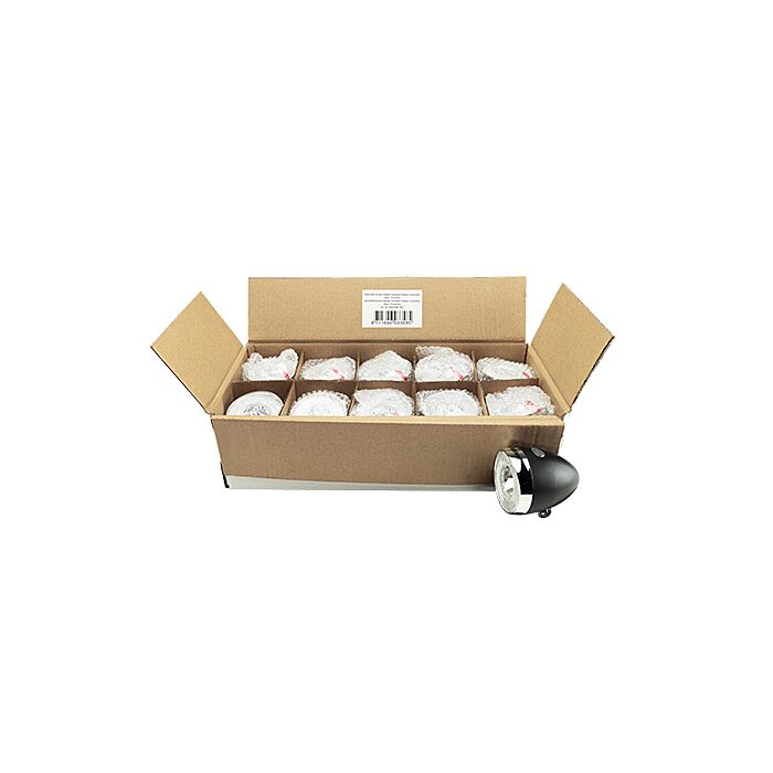 De Classic Luxurious koplamp is dé koplamp voor wie op zoek is naar betrouwbaarheid, stijl en kwaliteit. Deze lamp is nu beschikbaar in een praktische werkplaatsdoos met 10 stuks, wat ideaal is voor fietswinkels, werkplaatsen en groothandels die hun klanten willen voorzien van hoogwaardige fietsverlichting. Met een krachtige lichtopbrengst van 30 lux biedt deze koplamp uitstekend zicht in het donker, zowel in de stad als op landwegen.