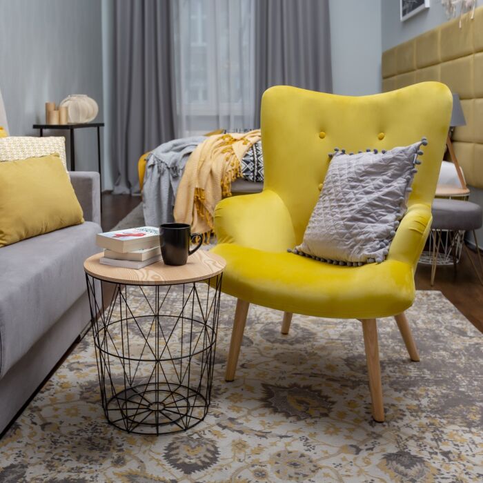 De HOMLA MOSS armchair in een opvallende gele kleur is perfect ontworpen voor moderne interieurs. Het stijlvolle design met een zacht, fluwelen oppervlak zorgt ervoor dat elke ontspanningsmoment nog aangenamer wordt. Deze stoel is een echte aanvulling in een woonkamer die baadt in wit en grijs, door de levendige kleur die een contrast en energie aan de ruimte toevoegt.