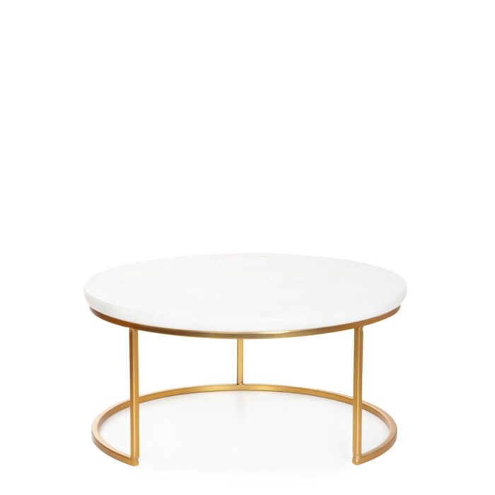 De MARBLE platter is het perfecte serveerbord voor degenen die niet alleen waarde hechten aan de smaak van hun snacks, maar ook aan de mooie manier waarop ze worden gepresenteerd. Het bovenste deel van wit marmer staat op een gouden frame, wat samen een uiterst stijlvolle compositie creëert. Op een tafel zal het elegantie toevoegen aan de gehele opstelling en de bereide lekkernijen op een prachtige manier tentoonstellen.