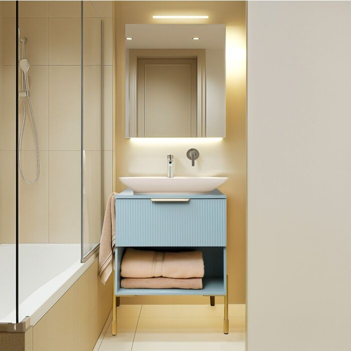 De NAVADO kast is ontworpen voor countertop wastafels en vormt een uiterst functionele set die zorgt voor de beste organisatie van de ruimte. Er is een ruime lade, ideaal voor cosmetica en badaccessoires. De open plank is perfect voor elegant gevouwen handdoeken of decoratieve manden met accessoires.