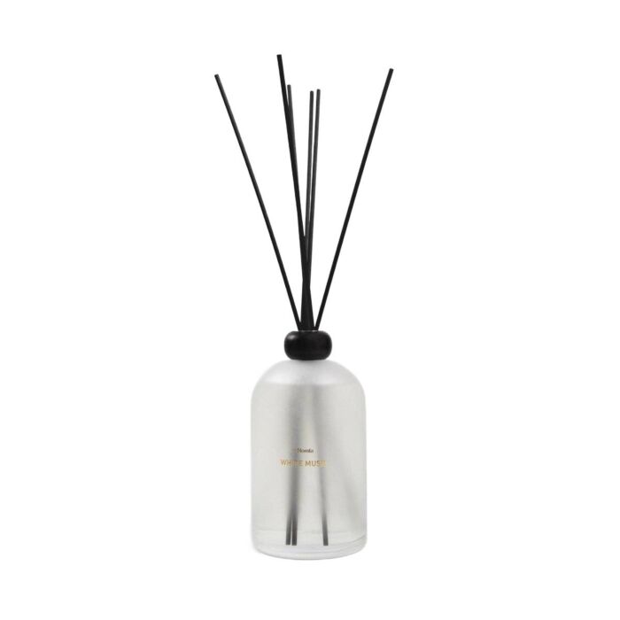 Flakon wykonany z matowego szkła łączy minimalistyczny design z trwałością. Zestaw zawiera czarne patyczki, które równomiernie uwalniają zapach.