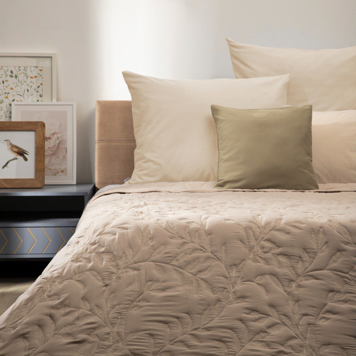 Rozświetl swoją sypialnię dzięki narzucie LIMENA w eleganckim, kremowo-beżowym odcieniu. Jej żakardowy wzór z motywem gałązek i liści dodaje wnętrzu lekkości i przytulnego charakteru, a szlachetna struktura tkaniny podkreśla subtelny urok każdej aranżacji – od klasycznych po nowoczesne.