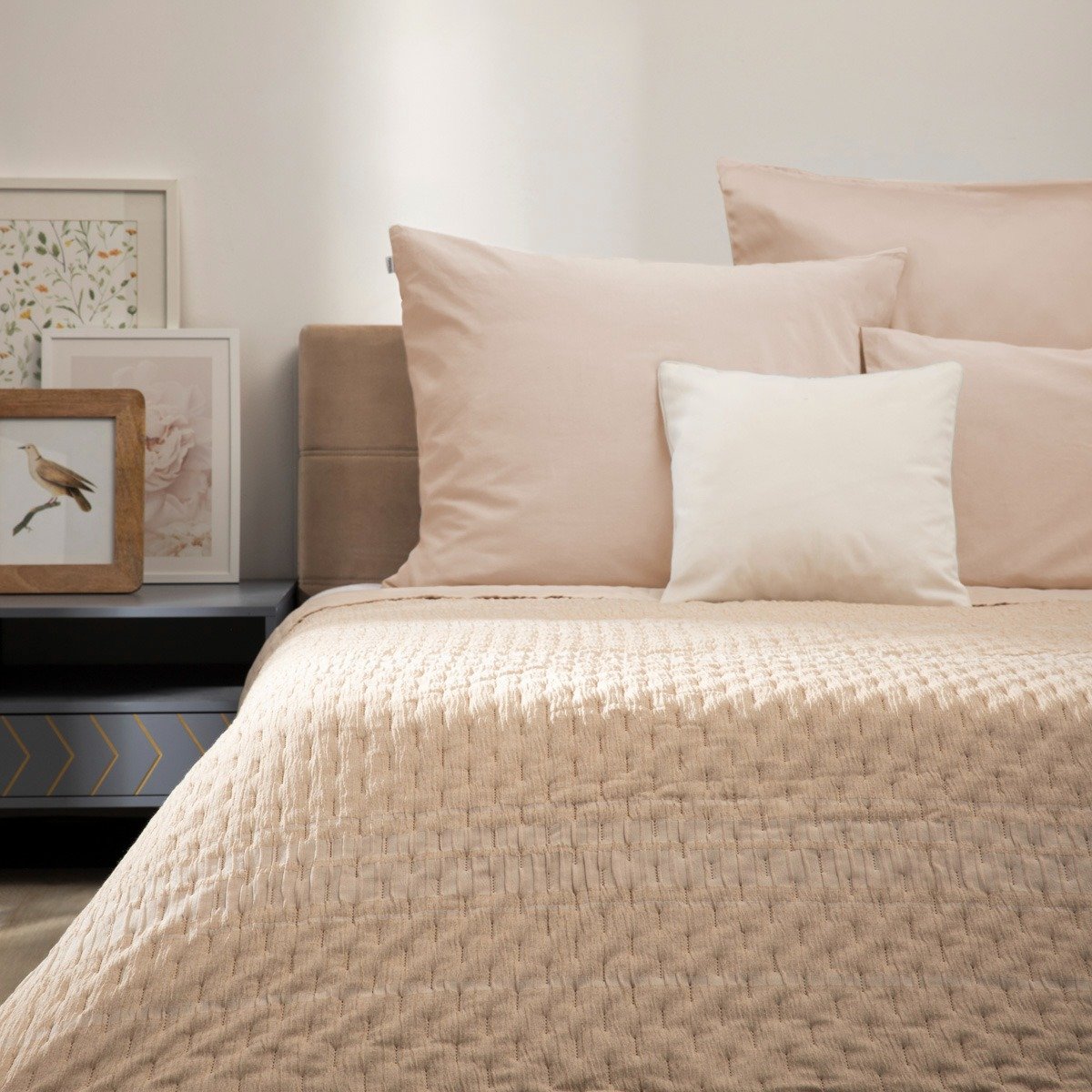 Narzuta ANDA to subtelny, a jednocześnie wyrazisty akcent, który odmieni charakter Twojej sypialni. Jej jasny odcień w połączeniu z eleganckim wytłoczeniem tworzy efekt harmonii i przytulnego luksusu. Pięknie odbija światło, nadając każdemu wnętrzu świeżości i lekkości.