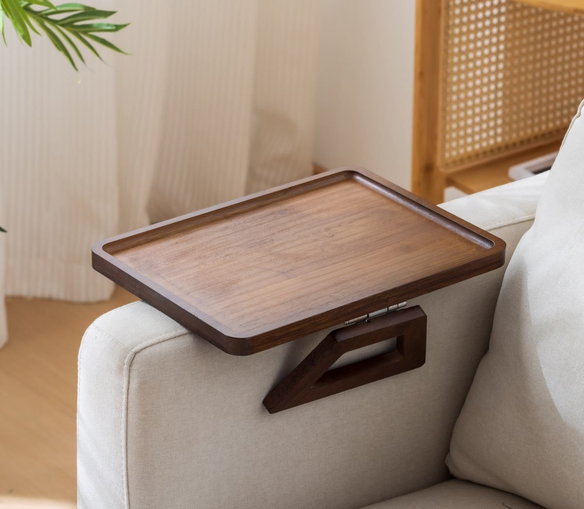 Dit armleuning dienblad is perfect voor gebruik in de woonkamer of slaapkamer. Hiermee kun je eenvoudig snacks, drankjes of andere items binnen handbereik houden terwijl je ontspant op de bank of in je favoriete stoel. Het is ook ideaal voor het lezen van boeken of werken met een laptop.