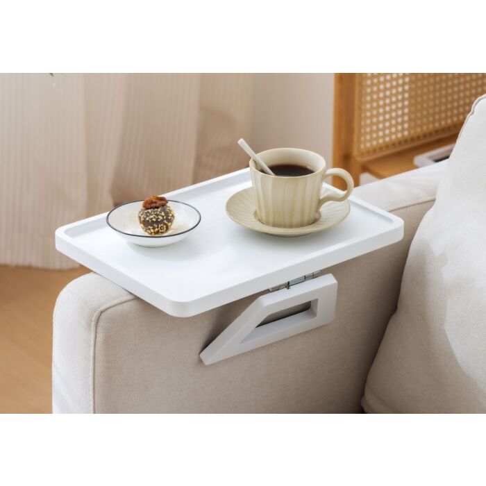 Dit armleuning dienblad is inklapbaar, wat zorgt voor een gemakkelijke opslag wanneer het niet in gebruik is. Daarnaast is het voorzien van een antislip oppervlak, zodat je jouw dranken en snacks veilig kunt neerzetten zonder dat ze gemakkelijk omvallen.