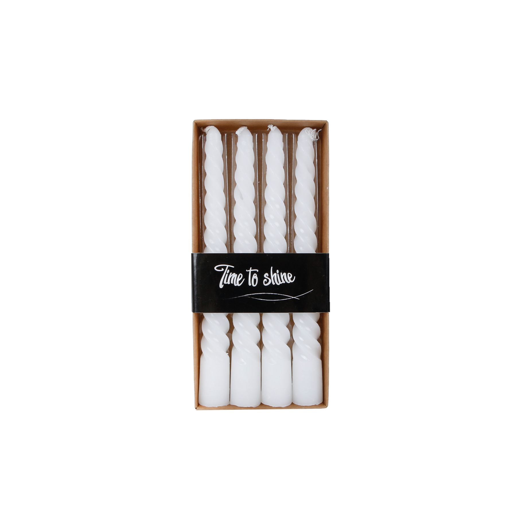 De tafelkaars twist in wit biedt een sfeervolle toevoeging aan elke setting. Deze kaarsen zijn ontworpen met een mooi en elegant uiterlijk, waardoor ze perfect zijn voor zowel dagelijks gebruik als speciale gelegenheden. Elk van de vier kaarsen in deze set heeft een brandduur van maar liefst 4 uur, wat zorgt voor langdurig genietende verlichting.