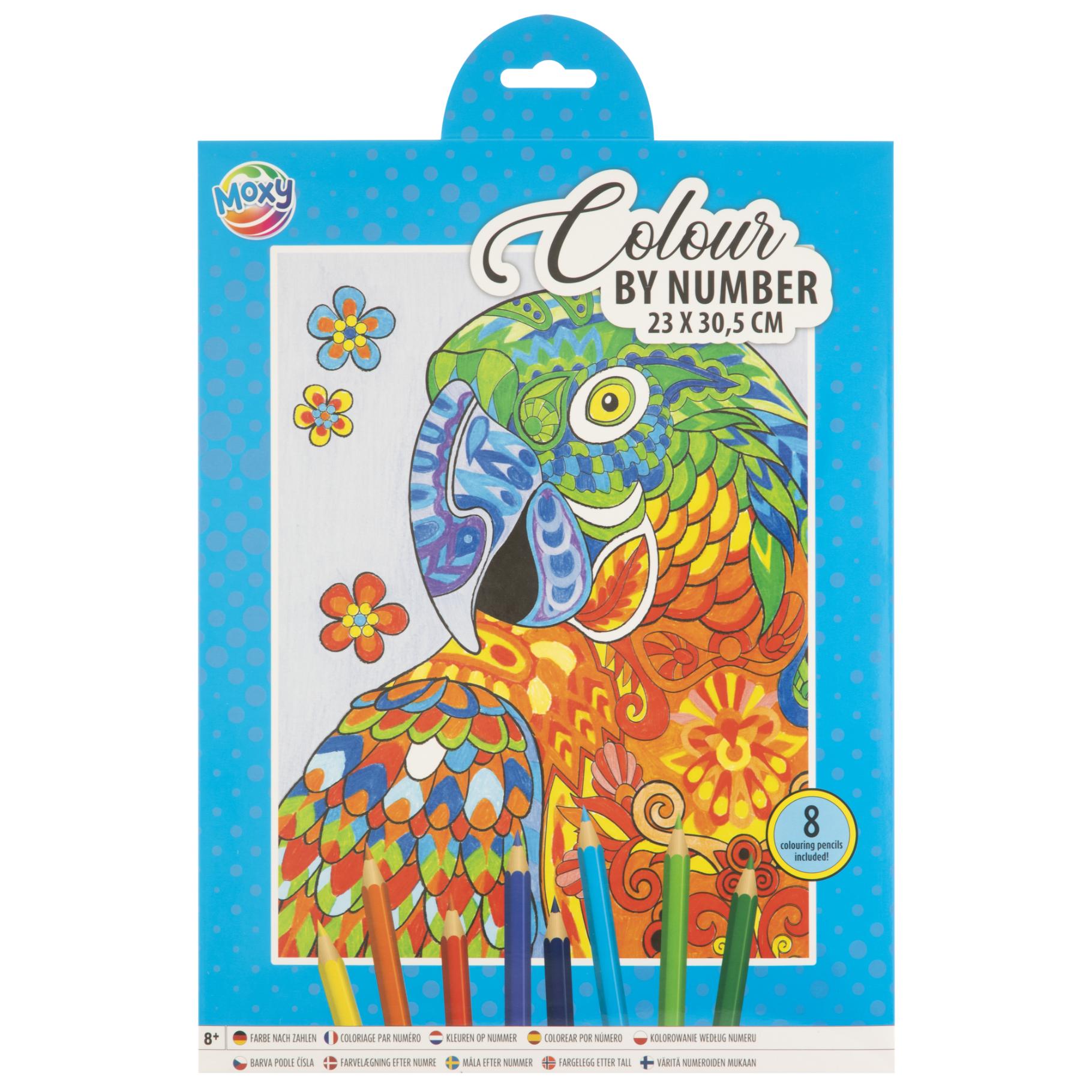 Kleuren op Nummer | 23x30.5 cm | 8 Potloden | Assorti