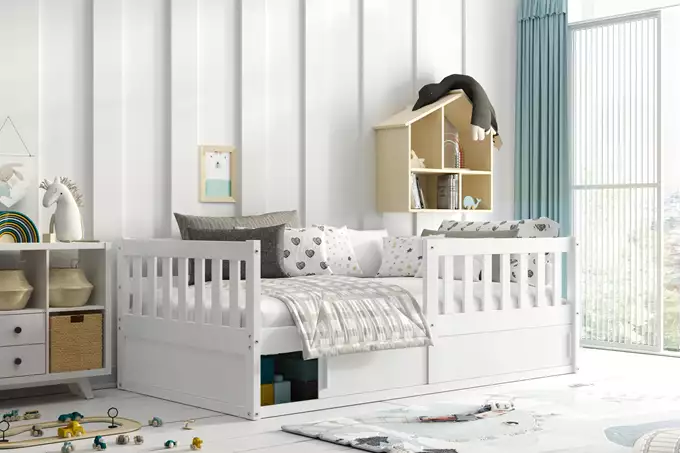 BMS | Kinderbed | 80x160 cm | Wit | Inclusief Matras en Opbergruimte