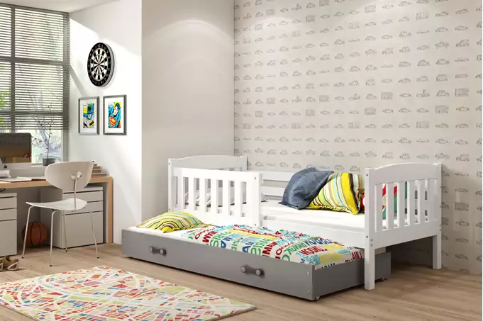 Het design van het BMS KUBUÅš bed is zowel praktisch als aantrekkelijk. De lade onder het bed is ontworpen voor extra opslagruimte, maar kan ook functioneren als een tweede slaapplaats, waardoor het bed uiterst veelzijdig is. De gebruiksvriendelijke montage is mogelijk dankzij de meegeleverde accessoires, zodat ouders het bed snel kunnen opzetten. De lade is voorzien van wielen wat het verplaatsen vergemakkelijkt.