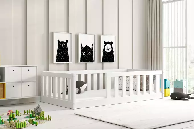 Het ontwerp van het Bella Sima bed is modern en functioneel, met een eenzijdige barrière aan de rechterkant om de veiligheid te waarborgen tijdens het slapen. Dit betekent dat kinderen veilig kunnen liggen zonder het risico om eruit te vallen. De afgeronde hoeken zijn niet alleen een esthetisch pluspunt, maar ook een belangrijke veiligheidsfunctie, die de kans op verwondingen verkleint.