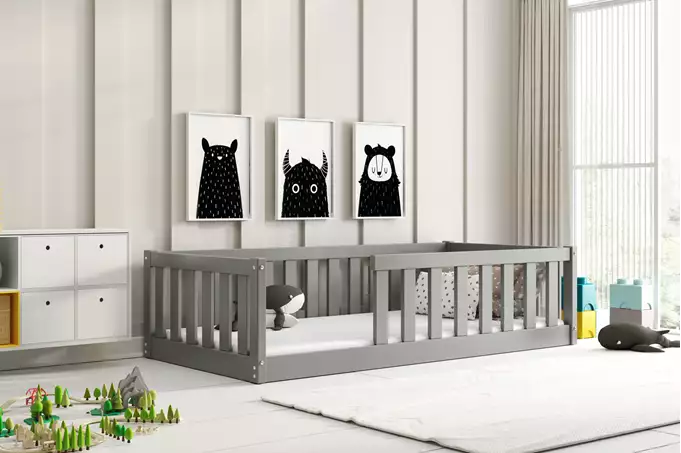 BMS | Eenpersoons Kinderbed | 80x160 cm | Grijs