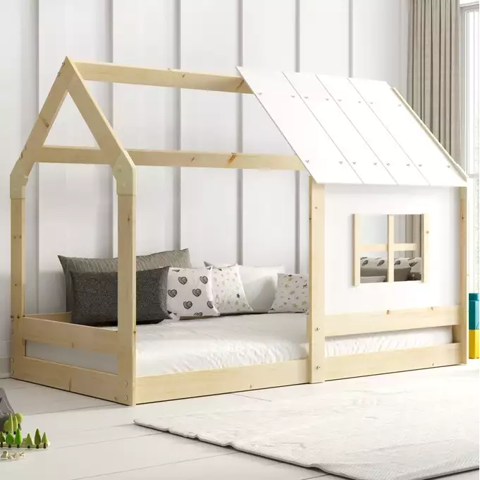 BMS | Kinderbed met Dak | Natuurlijk Hout | 80x160 cm