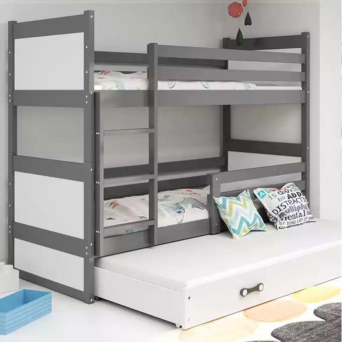 BMS | Jeugdbed | 90x200 | Drie Persoons | Grafiet/Wit