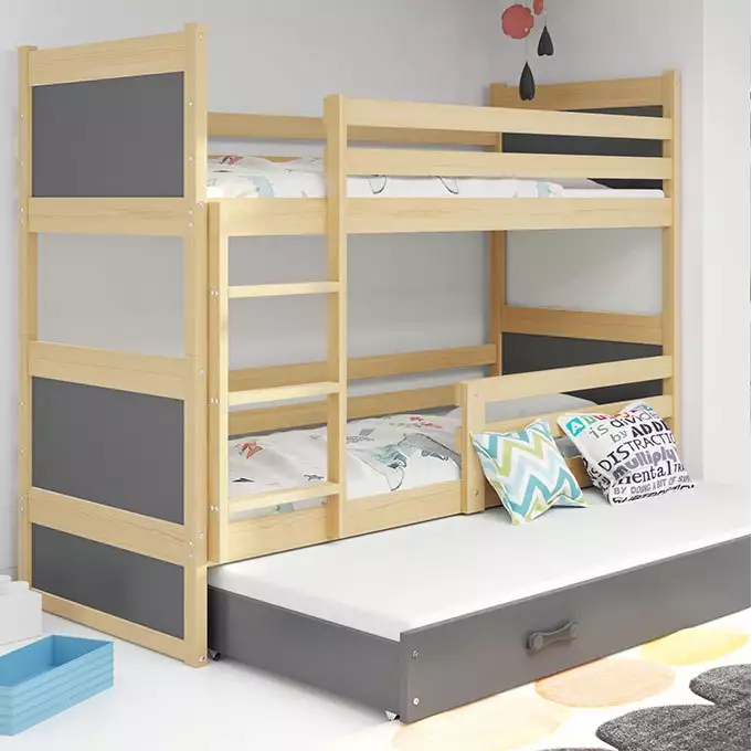 Het BMS RICO 3-persoons jeugdbed van 90x190 cm is een uitstekende keuze voor kinderen en tieners die een praktische en stijlvol meubilair nodig hebben. Dit bed is niet alleen functioneel, maar ook ontworpen om de slaapkamer op een aantrekkelijke manier in te richten. Met een stevig frame van dennenhout en een innovatief lattenbodem systeem, biedt dit bed de ondersteuning en comfort die nodig zijn voor een goede nachtrust.