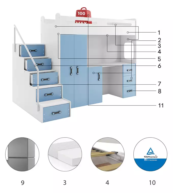 Het BMS MAX 4 jeugd eenpersoonsbed biedt een perfecte combinatie van comfort en functionaliteit voor elke kinderkamer. Met een stijlvol ontwerp in de kleur blauw is dit bed niet alleen praktisch, maar voegt het ook een speelse touch toe aan de slaapkamer van uw kind.