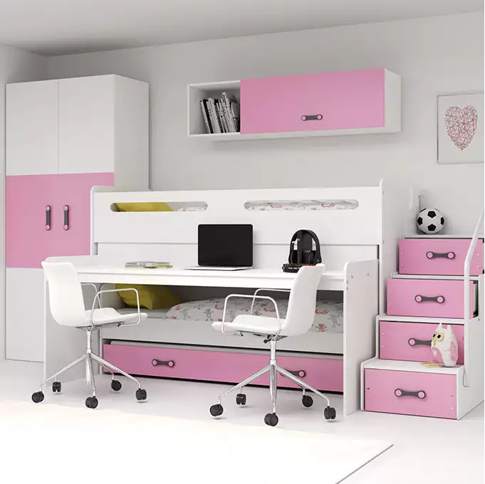 De BMS Triple Jeugdbed MAX 1 is een veelzijdige en stijlvolle slaapoplossing voor jongeren. Dit bed combineert functionaliteit met esthetiek en biedt de perfecte omgeving voor een goede nachtrust en studieplekken. Met een mooi roze kleurontwerp past dit bed perfect in elke kinderkamer.