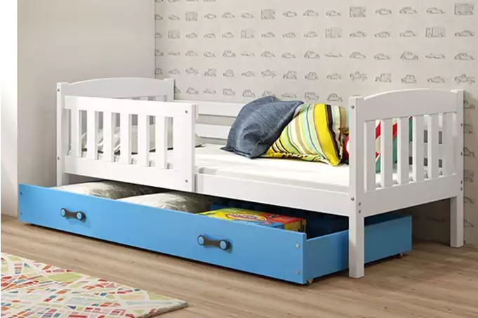 BMS | Kinderbed KUBUŚ | 80x160 cm | Wit/Blauw