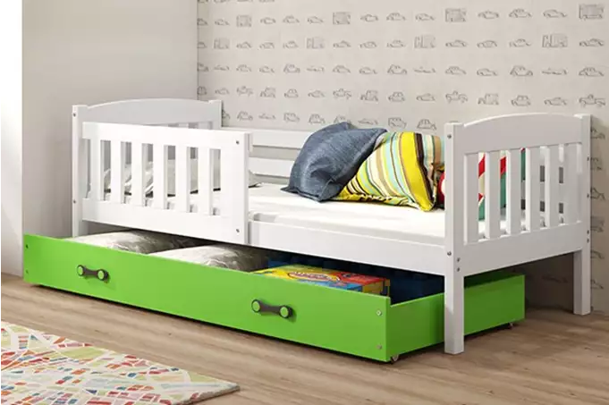Het ontwerp van het BMS KUBUÅš bed is gericht op gebruiksgemak en esthetiek. De eenvoudige montage met een klik-systeem maakt het mogelijk om het bed snel in elkaar te zetten. De elegante kleurencombinatie van wit en groen voegt een frisse uitstraling toe aan de slaapkamer van uw kind.