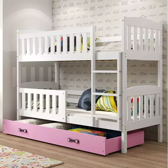 BMS | KUBUŚ 90X190 | Jeugd Bunk Bed | Wit / Roze