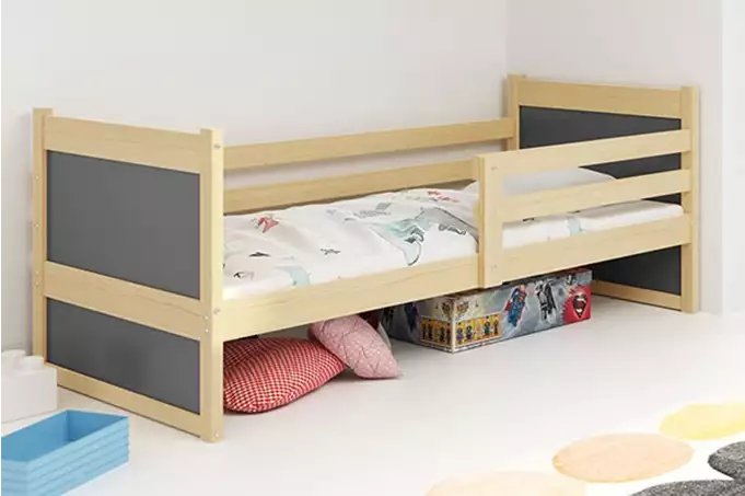 Het bedframe is gemaakt van hoogwaardig dennenhout dat bijdraagt aan de stabiliteit en duurzaamheid van het bed. De MDF-plaat heeft een watergedragen vernisafwerking die zorgt voor een nette uitstraling en bescherming van het materiaal. Met een totale belastbaarheid van 100 kg is dit bed geschikt voor verschillende leeftijdsgroepen.