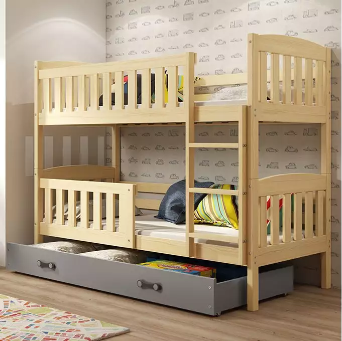 De BMS KUBUÅš 90x200 bunk bed met lade is een sterke en veelzijdige oplossing voor kinderkamers of gastenverblijven. Dit bed biedt niet alleen een comfortabele slaapgelegenheid, maar ook functionele opbergruimte met een handige lade.