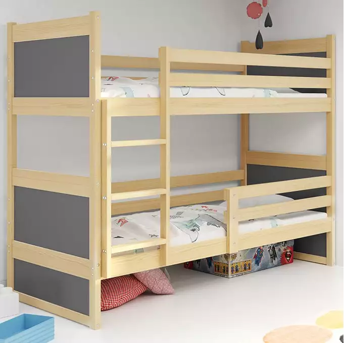 De BMS RICO bunk bed is een stijlvol en functioneel bed dat speciaal is ontworpen voor jeugd, met een afmeting van 90x190 cm. Dit bed biedt niet alleen een ruime slaapoplossing, maar ook een aantrekkelijke uitstraling met een combinatie van pijnboom en graphite afwerkingen.