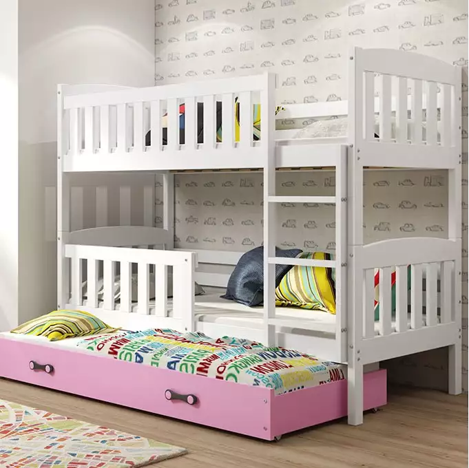 BMS | Jeugd Bed | 90x200 cm | Wit/Roze | KUBUŚ