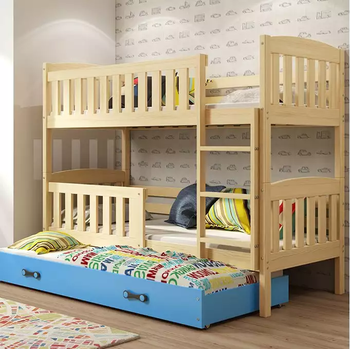 BMS | Jeugdbed | 90x200 | Drie Persoons | Huiselijk | Pine/Blauw