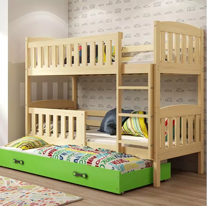 KUBUŚ | Drie-persoons Jeugdbed | 90x200 | Groen | Pine