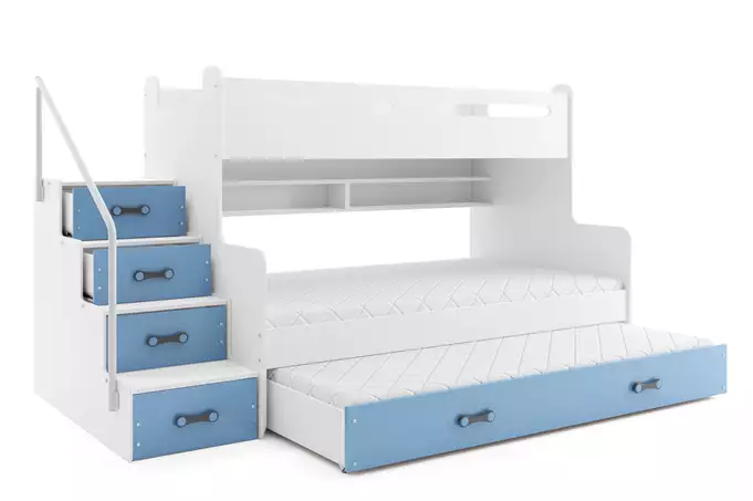 Het BMS MAX 3 bed is uitgerust met een innovatief click-clack systeem dat een snelle en eenvoudige montage mogelijk maakt. Deze montagemethode garandeert stabiliteit en duurzaamheid. Het bed heeft ook een handige lade die wordt geopend via een PVC handvat. Dit zorgt ervoor dat spullen eenvoudig opgeborgen kunnen worden, waardoor de kamer opgeruimd blijft.