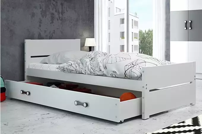 Dit bed is perfect voor gebruik in een kinderkamer of tienerkamer. Het biedt niet alleen een comfortabele slaapplek, maar de bijbehorende lade biedt veelzijdige opbergmogelijkheden. Met een laadvermogen van 100 kg is het ook geschikt voor volwassen gebruik indien nodig.