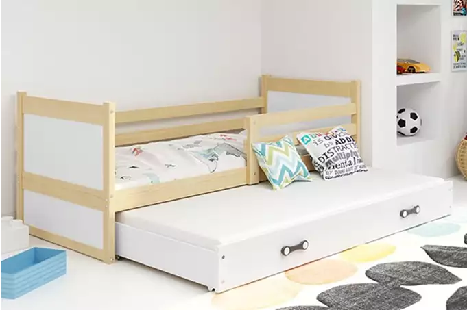 Het bed heeft afmetingen van 90x200 cm en is vervaardigd uit hoogwaardig dennenhout dat zorgt voor een stevige constructie. Het MDF is afgewerkt met een watergedragen vernis voor extra duurzaamheid en veiligheid. De matrassen zijn beschikbaar in de maten 200x90 cm en 190x80 cm, ontworpen voor een optimale nachtrust.