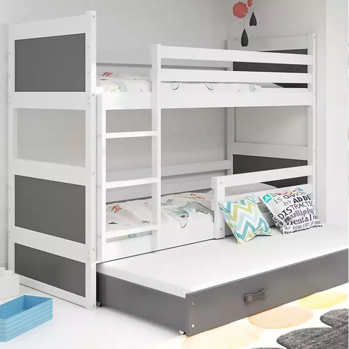 De BMS RICO Three-Person Youth Bed is de ideale aanvulling voor de slaapkamer van je kind, waarbij comfort en functionaliteit hand in hand gaan. Dit unieke bed biedt een combinatie van een degelijk ontwerp en slimme oplossingen. Het bed komt in de afmetingen van 90x190 cm en is geschikt voor kinderen en tieners die comfort en zelfs extra opbergruimte nodig hebben.