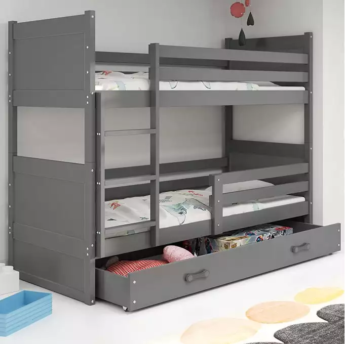 Dit bed is perfect voor kinderen en kan worden geplaatst in slaapkamers, speelkamers of logeervertrekken. Het strakke en moderne ontwerp in grafietkleur maakt het een aanvulling op verschillende interieurstijlen. Het bed heeft een laadcapaciteit van 100 kg per niveau, wat het geschikt maakt voor de meeste jongere gebruikers.