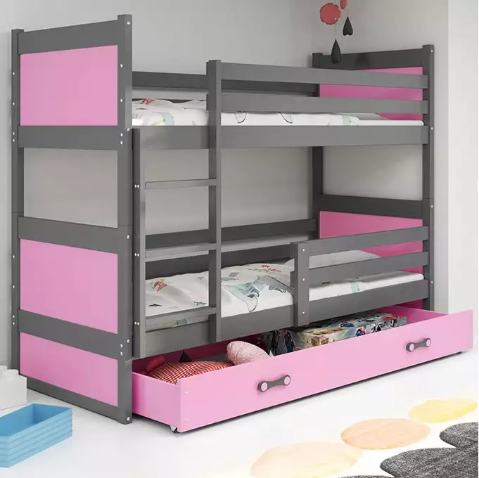 BMS RICO | Bunk Bed | 90x200 | Jeugd | Graphiet/Pink