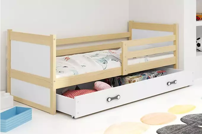 Het BMS RICO bed is perfect voor slaapkamers van jongeren. Het biedt voldoende ruimte voor een comfortabele nachtrust en is ideaal voor gebruik in kleinere kamers dankzij de harmonieus ontworpen lade, die extra opslag biedt voor beddengoed of speelgoed. Dit bed is een aantrekkelijke keuze voor elke jongere die zijn of haar ruimte stijlvol wil inrichten.