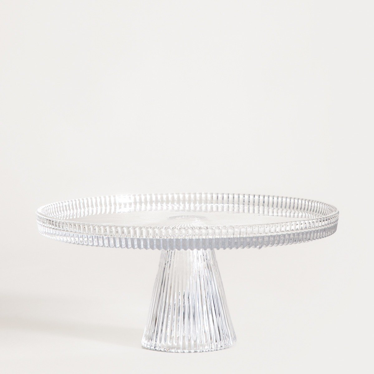 De LYNN platter is een uitzonderlijk elegant stuk servies dat gemak combineert met modern design. Gemaakt van glas en versierd met een gefluite oppervlakte, zal het de uitstraling van taarten, gebak, fruit of andere desserts perfect accentueren, waardoor het chic en stijlvol is voor elke tafelsetting.
