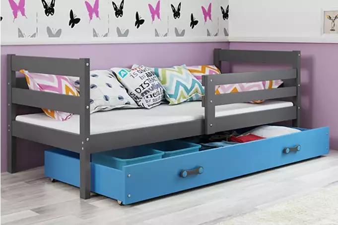 BMS | Eenpersoonsbed met Lades | 80x190 cm | Jongeren | Grafiet/Blauw
