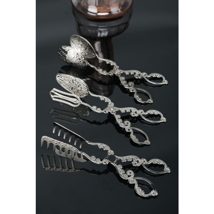 Maak kennis met onze exquise tangset, gemaakt met uiterste precisie en ontworpen om je culinaire ervaring te verbeteren. Deze tang is gemaakt van 100% zamak metaal en is niet alleen duurzaam, maar straalt ook een tijdloze elegantie uit die je keuken zal verfraaien.
