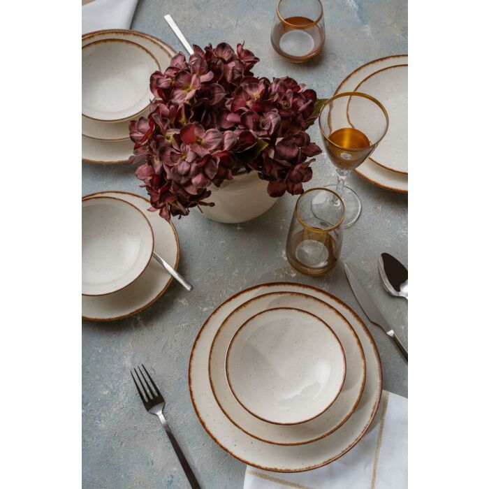 Transformeer je eetervaring met onze prachtige 24-delige porseleinen eetset. Deze set is gemaakt van de beste materialen en is ontworpen om je maaltijden te verbeteren en indruk te maken op je gasten. De elegante combinatie van witte en bruine kleuren voegt een vleugje verfijning toe aan je gedekte tafel, waardoor elke maaltijd voelt als een speciale gelegenheid.