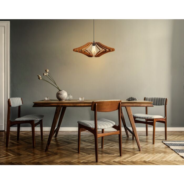 Deze kroonluchter heeft een totale hoogte van 55 cm en een diameter van 47 cm. Gemaakt van MDF met een dikte van 3 mm, biedt het een stevige constructie zonder in te boeten op esthetiek. De kap heeft een lengte van 19 cm en is ontworpen om een harmonieus geheel te vormen.