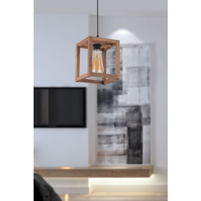 Deze kroonluchter heeft een compacte afmeting van 16 x 16 cm, met een totale hoogte van 60 cm, wat hem perfect maakt voor zowel grote als kleine ruimtes. De kap heeft een hoogte van 19 cm. Het gebruik van kwaliteitsvol hout zorgt voor een mooie, warme uitstraling die bijdraagt aan de sfeer van uw interieur.