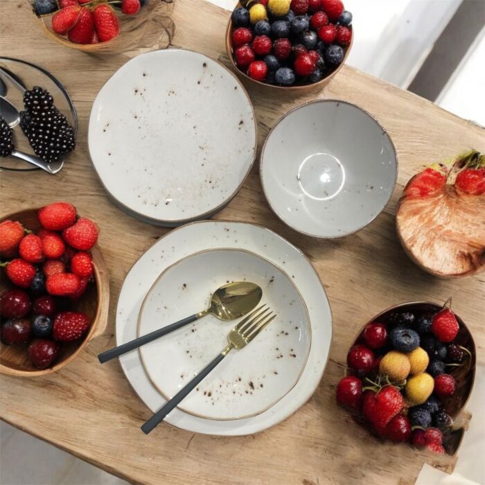 Transformeer uw eetervaring met onze exquisite 24-delige porseleinen dinerset. Gemaakt van 100% porselein, straalt elk stuk elegantie en verfijning uit, waardoor uw maaltijden naar een geheel nieuw niveau worden getild.
