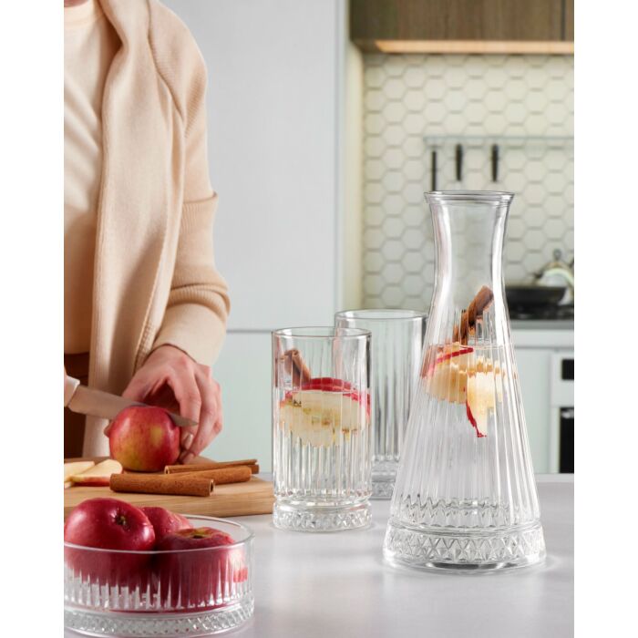 Deze veelzijdige glazen fles is perfect voor het serveren van water, sap of wijn. De transparante kleur laat de levendige tinten van je dranken zien, waardoor ze nog aantrekkelijker worden tijdens diners of andere speciale gelegenheden. Bovendien is de fles vaatwasmachinebestendig, wat het schoonmaken een fluitje van een cent maakt.