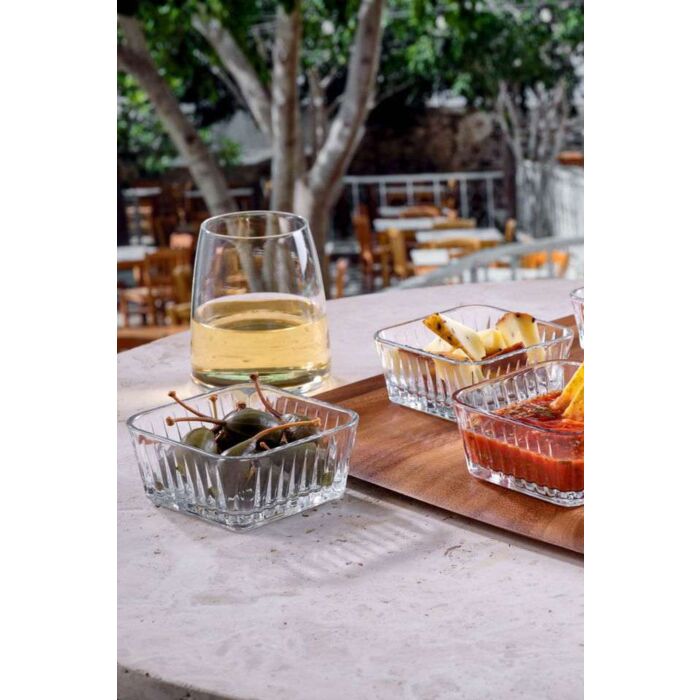 De set bestaat uit vier glazen opbergdozen met een afmeting van 9,8 x 9,8 x 4,4 cm en een capaciteit van 225 ml. Gemaakt van 100% hoogwaardig glas, bieden deze containers een duurzame oplossing voor al je opslagbehoeften. De bijgeleverde grijze plastic deksels zorgen voor een strakke afsluiting.